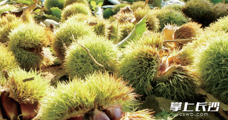 板栗上布满密集的尖刺,仰头采摘时极易误伤眼睛,建议戴护目镜。通讯员 供图