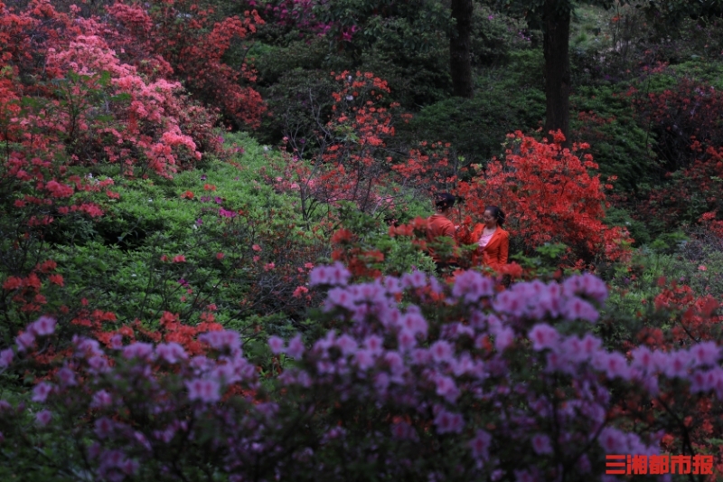 4月14日上午,长沙晚安家居文化园内杜鹃花盛开。曾冠霖 摄