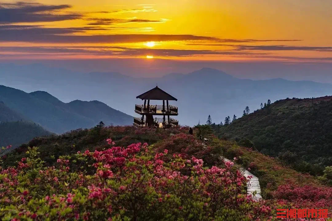 如果你想避开城市喧嚣,追寻更原生态的杜鹃盛景,浏阳的大围山国家森林公园绝不能错过。这里拥有华中地区最大的野生杜鹃花群落,面积超过10万亩。园区自海拔500米至1607米,垂直气候造就了“山樱初绽—云锦华章—杜鹃花海”的三重春色,真正实现“一山看尽三春景”。
