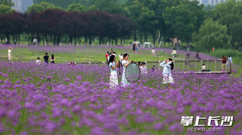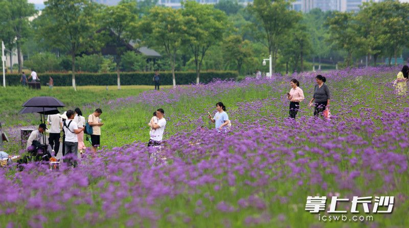 长沙晚报掌上长沙5月19日讯(全媒体记者 贺文兵)如梦似幻的紫色花海成为市民热门打卡地,绘就一幅温馨浪漫与生态之美的自然画卷……今日下午,记者在洋湖湿地公园看到,上百亩马鞭草迎来盛花期,众多市民徜徉在花海中赏花打卡。