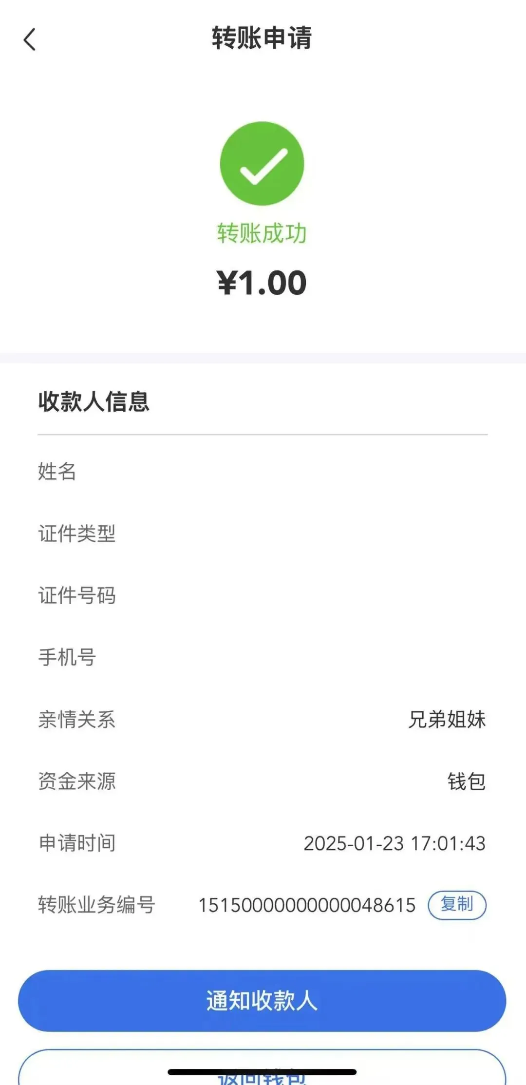 医保钱包转账时,若被转账医保钱包账户未开立,则如下图所示: