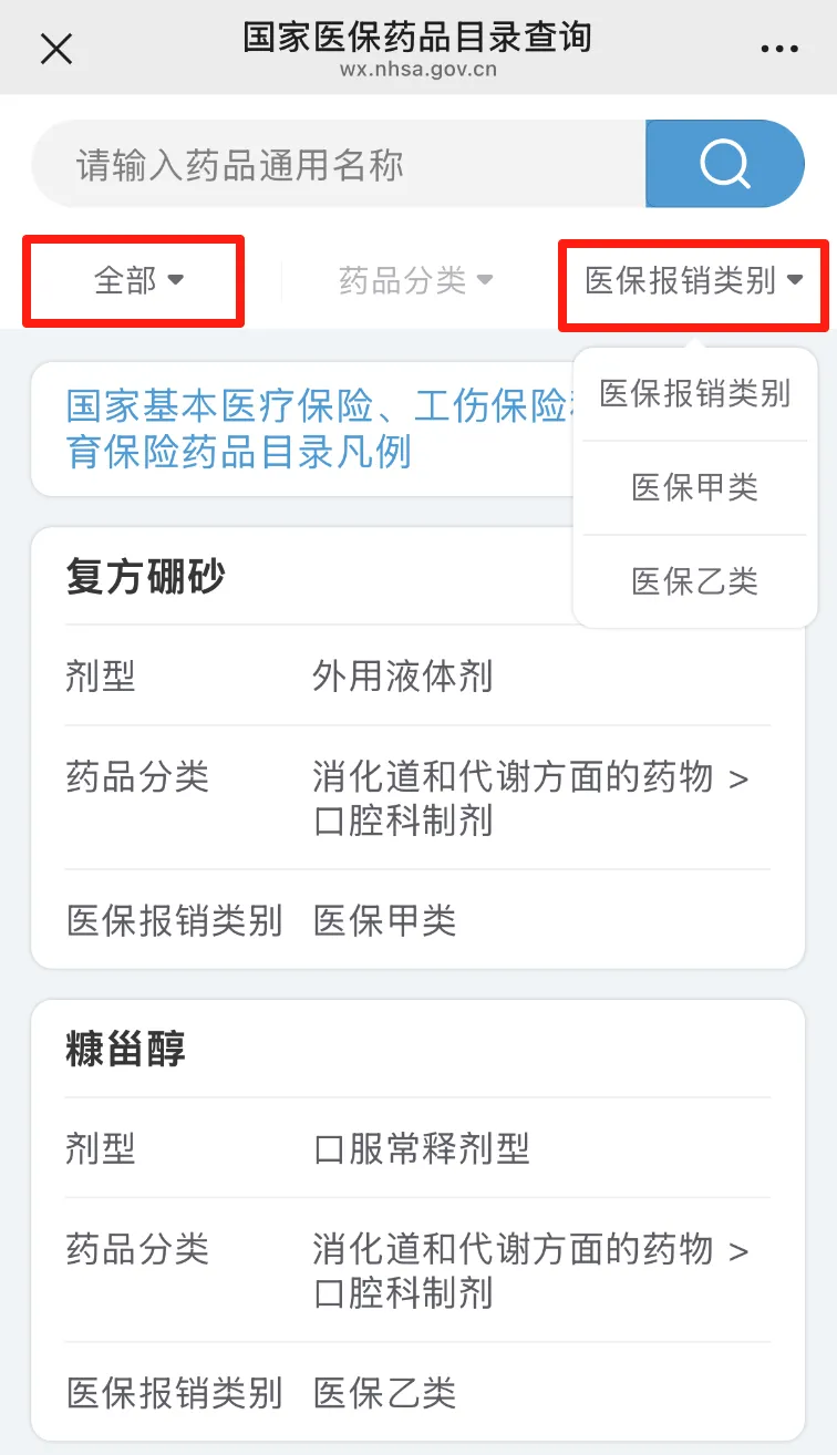 也可以根据自己的需求,选择“医保报销类别”等进行筛选。