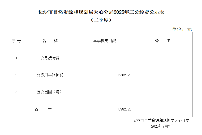 长沙市自然资源和规划局天心分局2025年三公经费公示表(二季度)